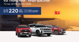 Hà Nội, tháng 4/2026 – Liên doanh ô tô Hyundai Thành Công Việt Nam (HTV) chính thức triển khai chương trình ưu đãi dành cho khách hàng mua xe trong tháng 4/2026 – “Vui Thống Nhất – Nhận quà chất”, với mức hỗ trợ hấp dẫn, giảm giá bán lên đến 220 triệu đồng, bao […]