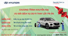 Nhằm tri ân tất cả khách hàng thân thiết đã tin tưởng đồng hành cùng Hyundai Sơn La trong những ngày đầu tiên, Hyundai Sơn La xin gửi đến quý khách hàng chương trình khuyến mại. Từ ngày 05/11 đến 20/11/2019 , Ưu đãi Dịch vụ ngày nhà giáo Việt Nam 20/11/2019 thay lời tri […]